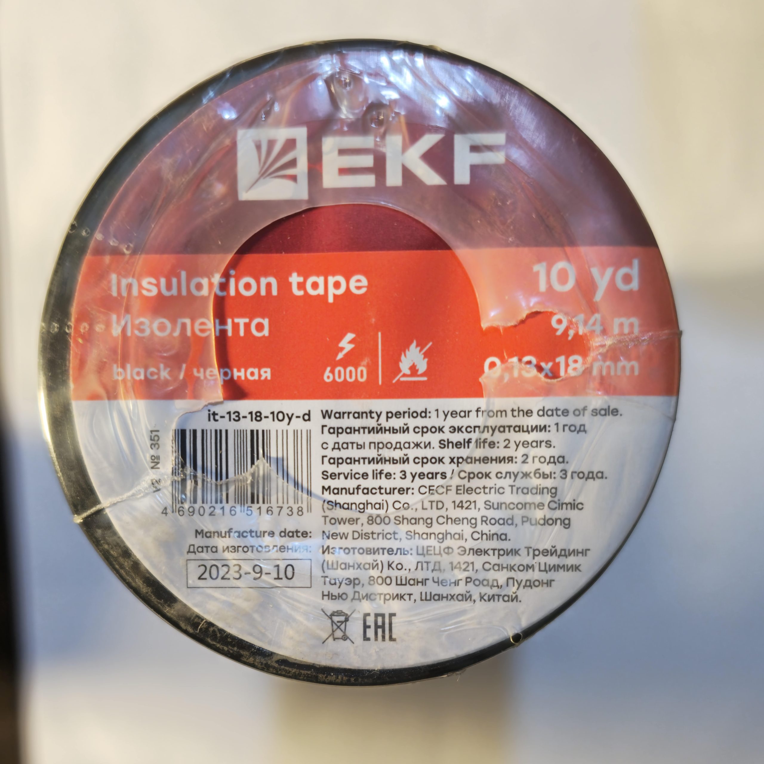 نوار چسب برق عایق بندی اصلی که این نوار چسب برق برای موارد عایق بندی مورد استفاده قرار می گیرد و این چسب برق در کشور روسیه تولید می شود و با برند EKF ساخته شده و توانسته این برند در ایران فروش بالایی داشته و فروش خوبی در شهرهای بزرگ کشور کشور دارد و چسب برق EKF اصلی که 0 تا 100 این چسب برق در روسیه خط تولیدش قرار گرفته و به کشورهای همسایه خود صادرات بالایی داشته و فروشگاه اشنایدر 110 واقع در تهران خیابان لاله زار جنوبی کوچه باربد پاساژ سعید طبقه اول پلاک 33 توزیع خواهد شد .