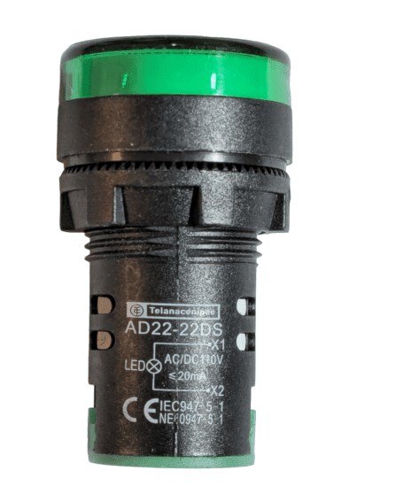 چراغ سیگنال LED اشنایدر 110 ولت چینی مخصوص نصب بر روی انواع تابلو برق های ایرانی در رنگ بندی های مختلف و دارای لامپ های نسوز ال ای دی با نور فراوان و این سیگنال سبز اشنایدر در کار به هیچ عنوان داغ نمی کند و عمر مفید و طولانی داشته است سیگنال 110 dc اشنایدر سبز در جعبه های 10 تایی ضد اب تولید شده و در 5 رنگ اصلی موجود می باشد . چراغ سیگنال های چینی با برندهای متفرقه عمر کوتاهی دارند و بعد از 4 ماه کارکردن می سوزند و فقط مزیتی که دارند قیمت ارزانی داشته است .