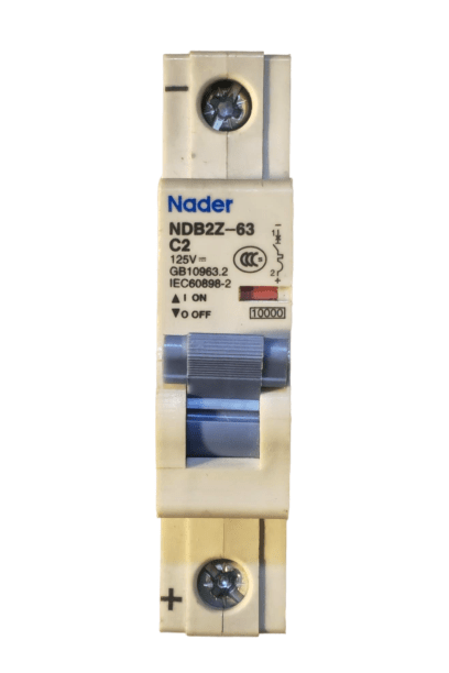 کلید مینیاتوری nader دیسی تکفاز که این کلید مینیاتوری بیشتر در زیر ساخت تابلو برق های شرکت مخابرات ایران مورد استفاده قرار می گیرد و یک کلید مینیاتوری نسل قدیم دیسی در امپرهای جور بوده که از کلید مینیاتوری nader دیسی تک پل 1 امپر دی سی تا کلید مینیاتوری 100 امپر دی سی در گروه صنعتی اشنایدر 110 لاله زار جنوبی موجود می باشد . کلید مینیاتوری nader دیسی تکفاز توانایی خوبی در کارهای سخت دارد و این کلید مینیاتوری دارای قطب منفی و قطب مثبت بوده و قدرت قطع استانداردی در هنگام اتصال کوتاه و اضافه امپر کشیدن وسایل برقی دی سی داشته است .